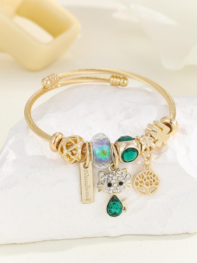Cat & Water/drop Charm Bangle