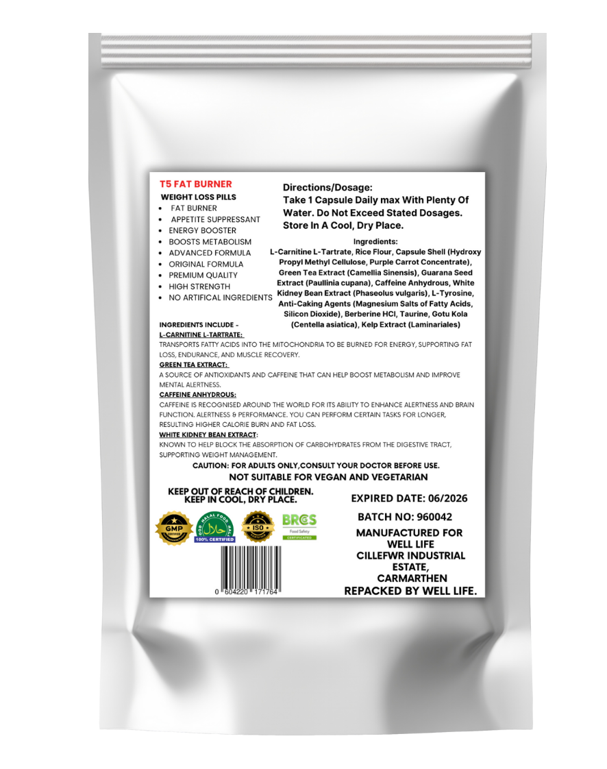 Take your weight-loss journey to the next level with Well Life Athletics T5 Triple Strength, a powerful fat-burning supplement designed to support faster, more effective results. This advanced formula works to boost metabolism, increase energy levels, and help your body burn stubborn fat while supporting appetite control.